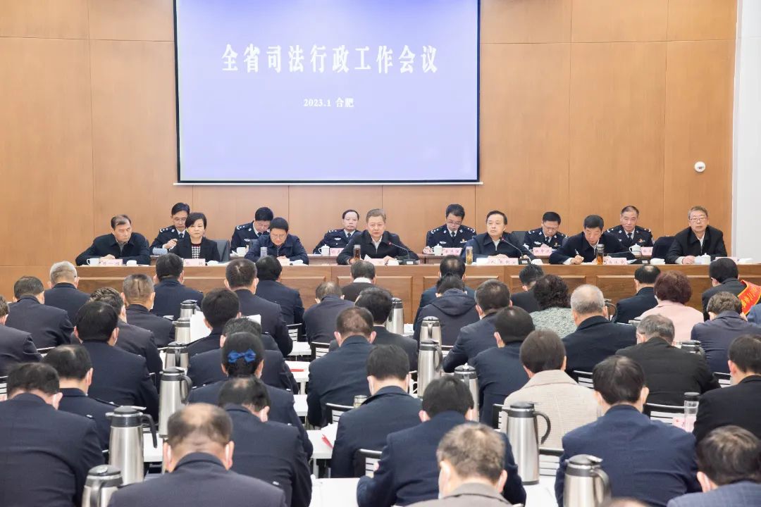1月31日,全省司法行政工作会议在安徽法务中心召开。会议主要任务是坚持以习近平新时代中国特色社会主义思想为指导,全面贯彻落实党的二十大精神,深入学习贯彻习近平法治思想和习近平总书记对政法工作的重要指示精神,认真贯彻落实中央政法工作会议、全省持续深化“一改两为”大会和省委政法工作会议等会议精神,总结去年工作,分析当前形势,部署2023年重点工作任务,奋力推动全面依法治省和司法行政工作走在全国前列。厅党委书记、厅长姜明出席会议并讲话,厅党委委员、副厅长、一级巡视员张国安主持会议。厅领导、厅一级、二级巡视员和省监狱局、戒毒局、警官学院主要负责同志出席会议。